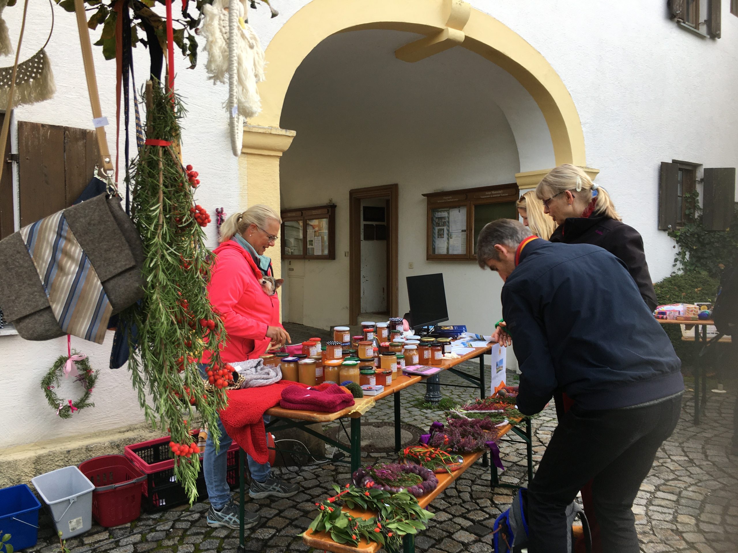 Heute, am 23. Oktober ist der diesjährige Weltmissionssonntag und in diesem Zusammenhang wurden nach dem Gottesdienst fair gehandelte Waren im Rahmen eines Eine-Welt-Verkaufs angeboten. Wir hatten die Gelegenheit, uns diesem Verkauf mit einem eigenen Info- und Verkaufsstand anzuschließen. Heike hatte viel Zeit investiert, um Marmeladen in vielen Geschmacksrichtungen und herbstliche Kränze zu produzieren, was beides großen Anklang fand. Der komplette Umsatz geht ohne Abzug als Spende an das Projekt.