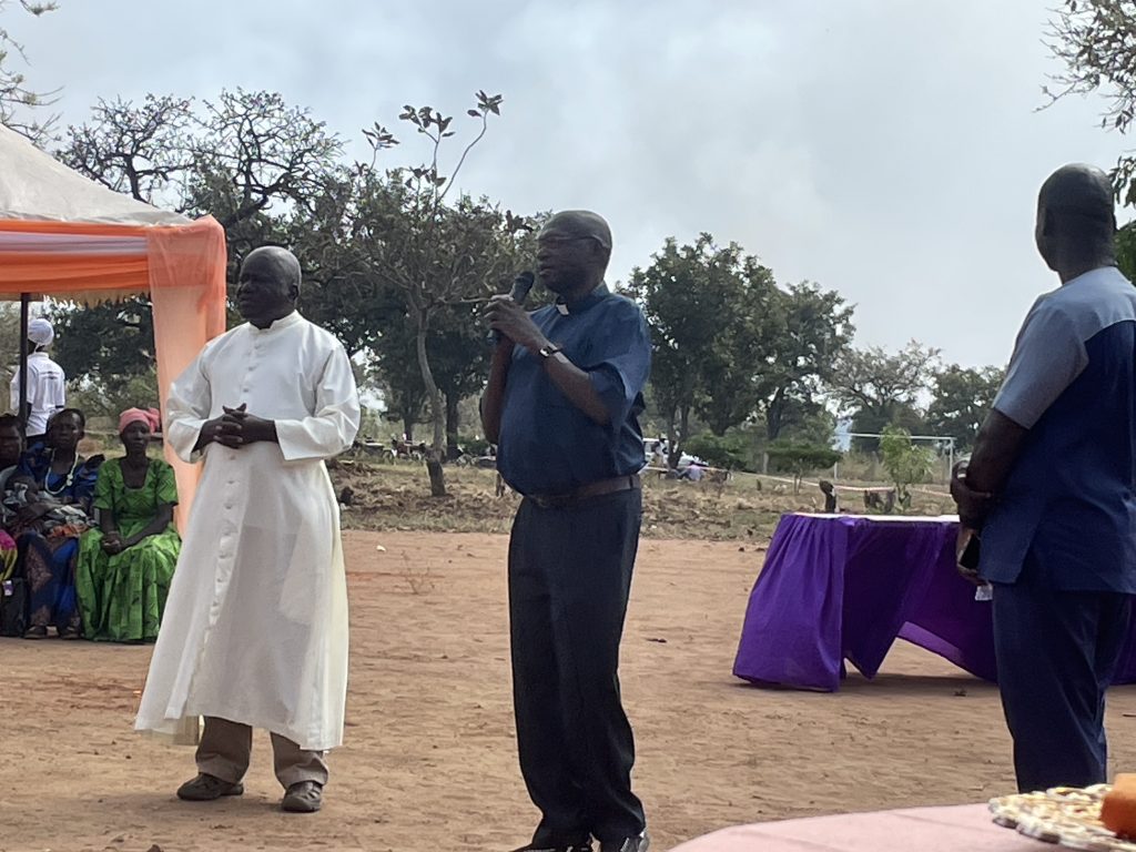 Gegen zehn Uhr beginnt der Gottesdienst, obwohl die Plätze nach wie vor nur dünn besetzt sind. Der Gottesdienst wird gehalten von Father Joe, den wir bei unserer ersten Reise nach Adilang in Pymol besucht haben, und Father Felix vom Ocee Jesuit College in Gulu. Der Gottesdienst wird in Acholi gehalten, sodass wir nicht allzu viel verstehen, aber die von einem Chor gesungenen Lieder sind eine schöne Auflockerung.
