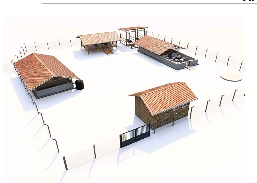 Aber damit nicht genug der guten Nachrichten. Ein zweites für die Berufsschule sehr wichtiges Vorhaben ist der Bau von Stallungen, weil zur landwirtschaftlichen Ausbildung natürlich auch Viehzucht gehört. Da am Ende Schweine, Ziegen, Rinder und Geflügel untergebracht werden sollen, ist das Ganze auch ein größeres Vorhaben.