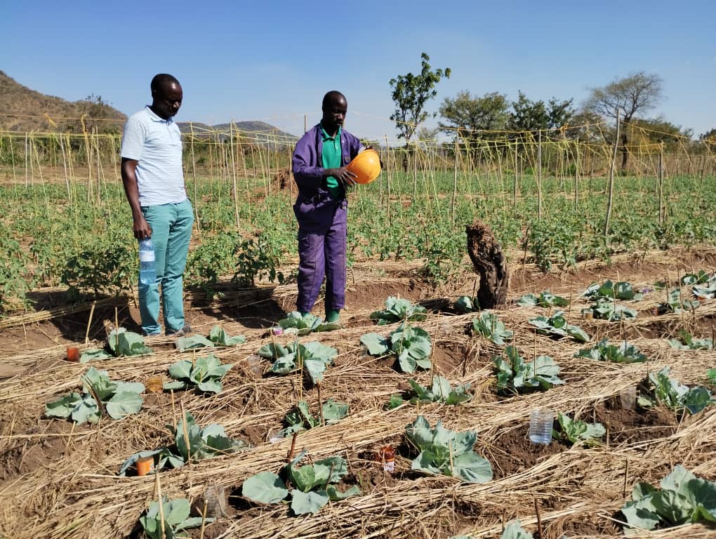 Seit Oktober haben wir nun zusätzlich einen Projekt-Manager, der das Thema in Summe verantworten soll. Der junge Mann, der dafür gewonnen werden konnte, ist für uns kein Unbekannter: Nelson hat den allerersten Gartenbaukurs in der Berufsschule geleitet, der schon vor der Eröffnung der Schule stattgefunden hat. Im Januar 2023 nannte ich ihn „Master of Paradise“, weil er mit seinen Schülern Teile des Schulgeländes zu ertragreichen Gärten umgebaut hatte. Er verließ dann die Schule, um sich beruflich noch weiterzubilden, und kommt nun in verantwortlicher Position in unser Projekt zurück. Auf dem Bild von Anfang 2023 ist er rechts neben dem damaligen Schulleiter zu sehen.