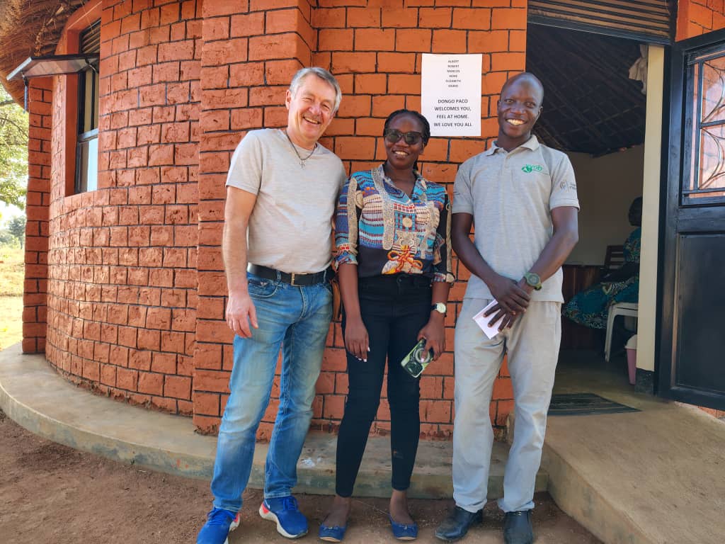 Abends sitzen wir alle etwas erschöpft, aber glücklich über den Verlauf des Tages beim Bier und später in kompletter Runde beim Abendessen. Kurz vor Mitternacht kommt auch Francis, der zweite Vorstand von Dongo Paco, aus Lira. Da Sigrid ihn noch nicht kennt, stellt Heike ihn als „Robert von Dongo Paco“ vor, worüber alle herzlich lachen können.