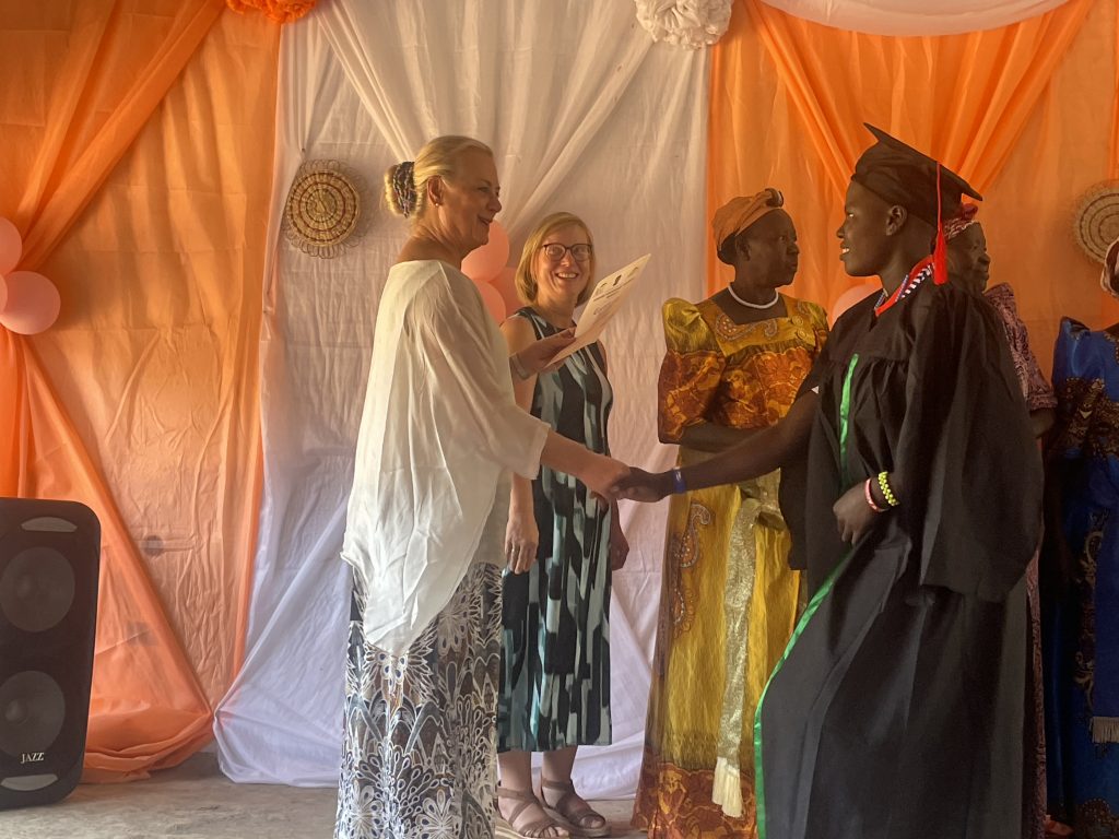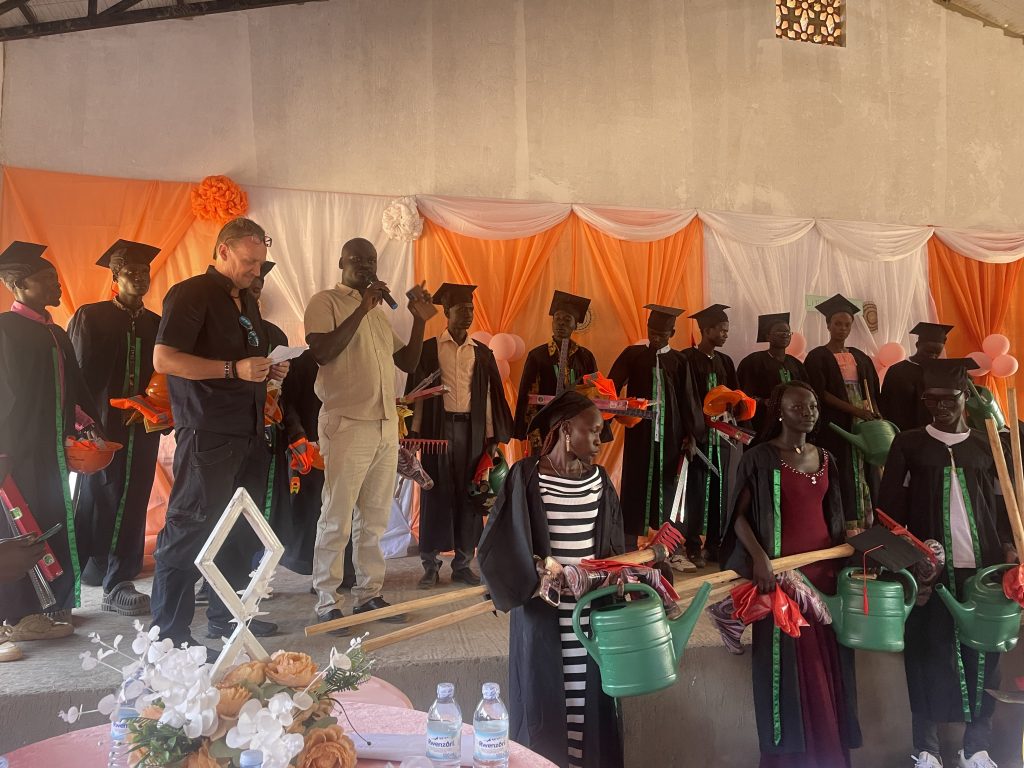 Zum Abschluss gibt es auch noch Geschenke für die Studenten, die eine zweijährige Ausbildung absolviert haben. Die Geschenke – Werkzeug für die Maurer und die angehenden Landwirte – hat Markus gesponsert, weil er vor zwei Jahren hier war, um die Stipendiaten auf den Weg zu bringen und ihnen damals versprochen hat, bei ihrem Abschluss wiederzukommen.