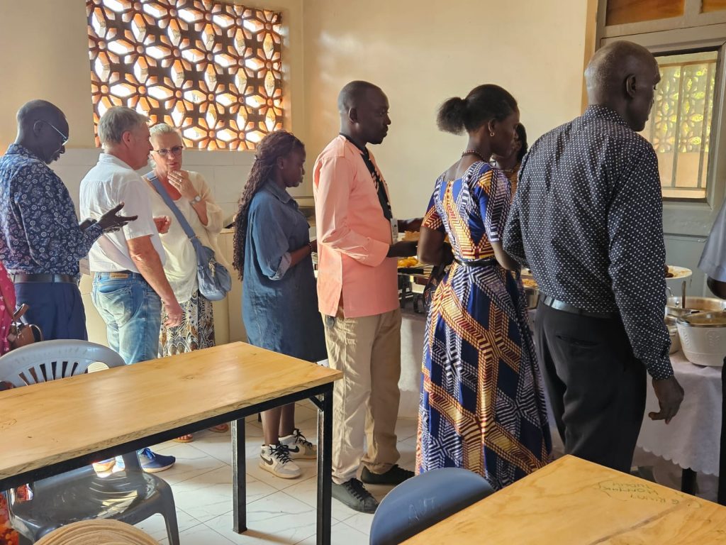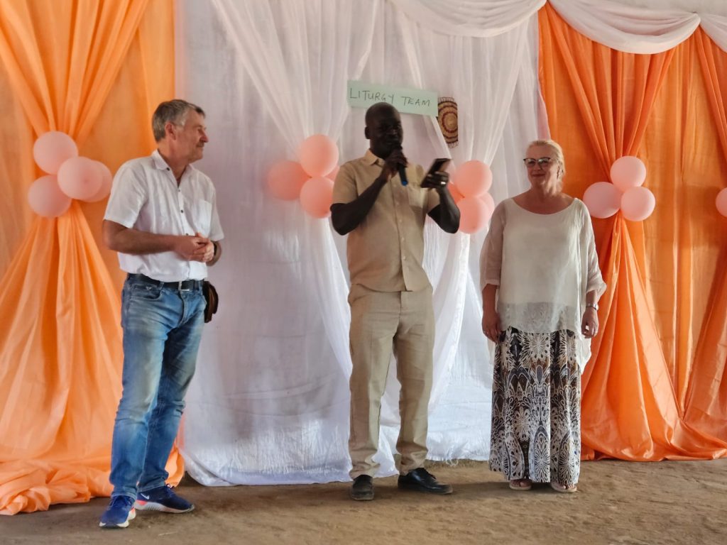 Um zehn Uhr kommen dann die Priester: Father Jino, der örtliche Priester, Monsignore Matthew Odong von der Diözese Gulu und Father Felix aus Lira. Beide kennen wir aus den vergangenen Jahren schon sehr gut. Um viertel nach zehn beginnt langsam der Gottesdienst und die Main Hall füllt sich langsam. Wir hören im Laufe des Tages, dass einige der Maurer, die heute ihr Zeugnis für die zweijährige Ausbildung bekommen, die letzten Tage voll mitgearbeitet haben, damit die Main Hall fertig wird. Wir sind froh, weil es hier drin kühler ist als draußen.