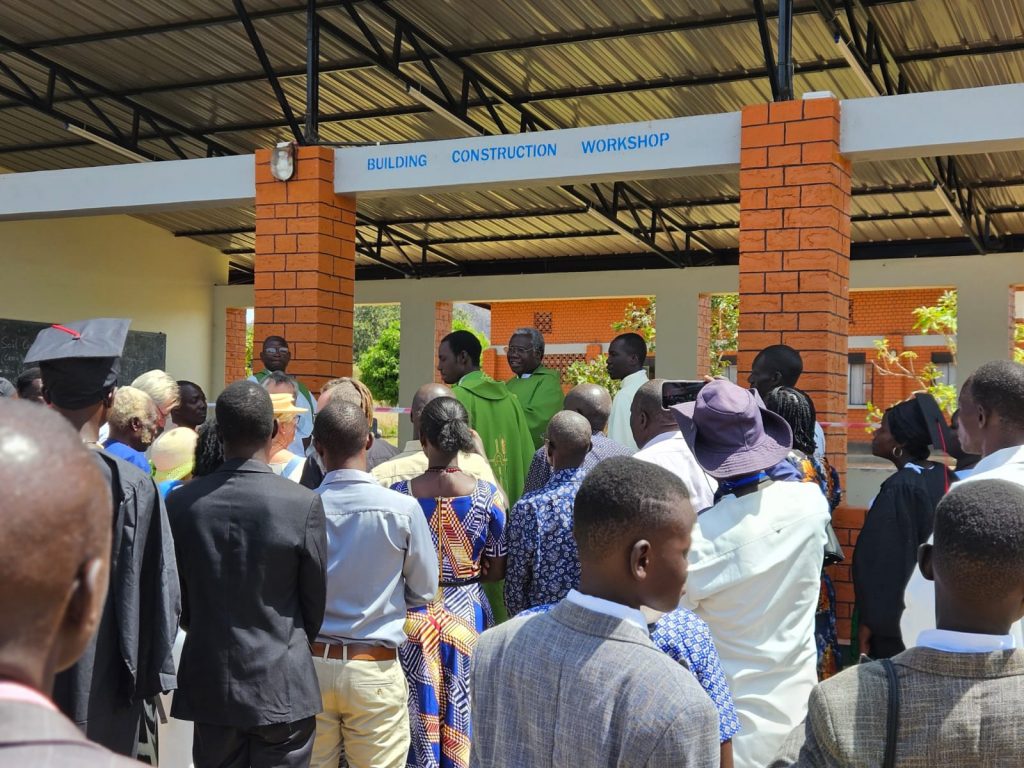 Nach dem Gottesdienst werden die neuen Gebäude gesegnet: Zunächst das Agriculture Lab und die überdachte Fläche für die Maurer und dann die neugebauten Stallungen. Da unsere große Gönnerin Traudl aus Würzburg beide Vorhaben sehr gefördert hat, spricht ihr der Monsignore großen Dank aus und schließt sie ins Gebet ein. Weil ihr Name für ugandische Zungen schwer auszusprechen ist, wird sie kurzerhand zur „Trudi“. Wir dürfen  bei der Eröffnung jeweils feierlich das Band durchschneiden.