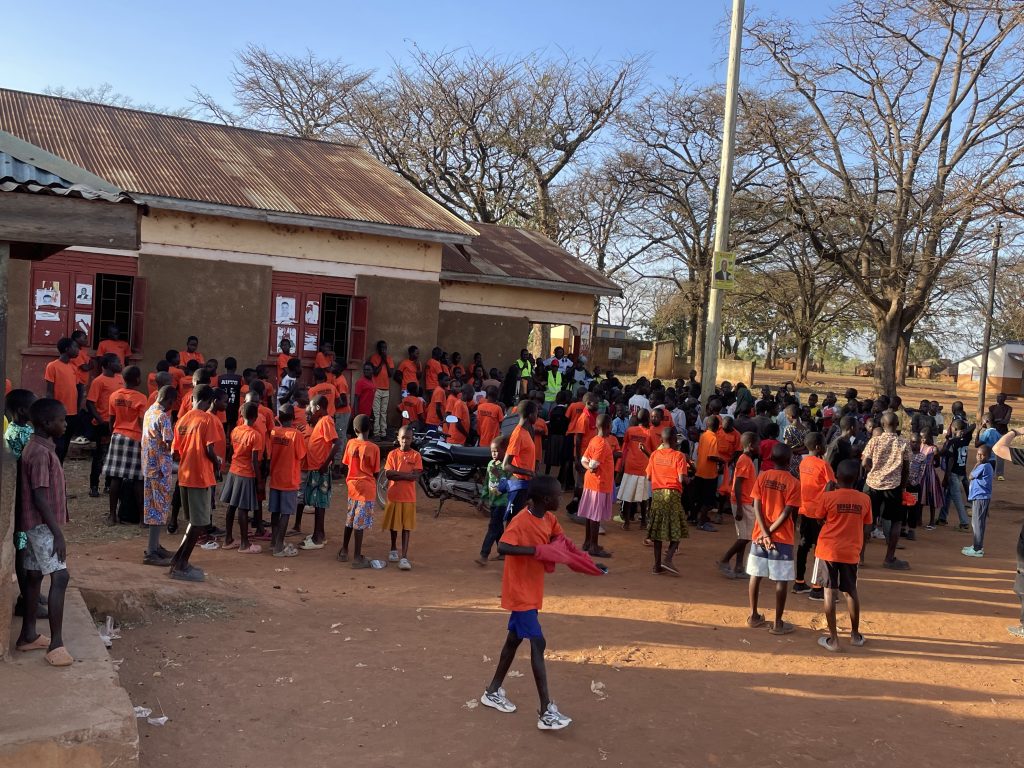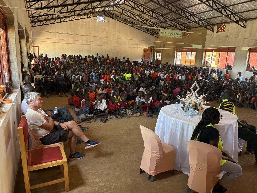 Auf dem Schulgelände sind bei unserer Ankunft nicht nur die Läufer, sondern noch viele andere Kinder. Emmanuel schließt bei ungefähr 800 Kindern das Tor, weil das Ganze sonst nicht mehr beherrschbar ist.