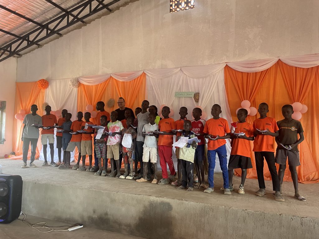 Am Schluss werden noch viele Preise verliehen, die alle Markus mitgebracht hat. Er hat mit einer großzügigen Spende diesen Tag möglich gemacht, da es ihm ein Herzensanliegen war, möglichst viele Kinder wenigstens für diesen Tag glücklich zu machen. In Kombination mit Heikes Sammlung von Kinderbüchern, damit die Kinder zum Lesen animiert werden, waren das, wie Emmanuel betont, die beiden Ausgangspunkte für diesen tollen Tag.
