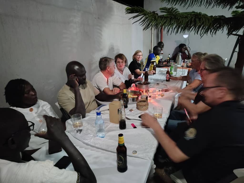 Wir packen schon mal für morgen und setzen uns dann in einem erweiterten Kreis zum Abendessen in den Innenhof des Guesthouses. Charles, der Schulleiter, Pius und Florence und auch Francis, Vivian und Rebecca sind dabei. Es wird ein sehr schöner Abschiedsabend, wir bekommen Dongo-Paco-Poloshirts überreicht und am Schluss sind alle ausgelassen am Tanzen, weil wir uns freuen können und auch ein bisschen stolz sein dürfen, was wir gemeinsam voranbringen konnten. Bis ein Uhr feiern wir, aber dann geht’s ins Bett, da wir morgen früh rausmüssen.