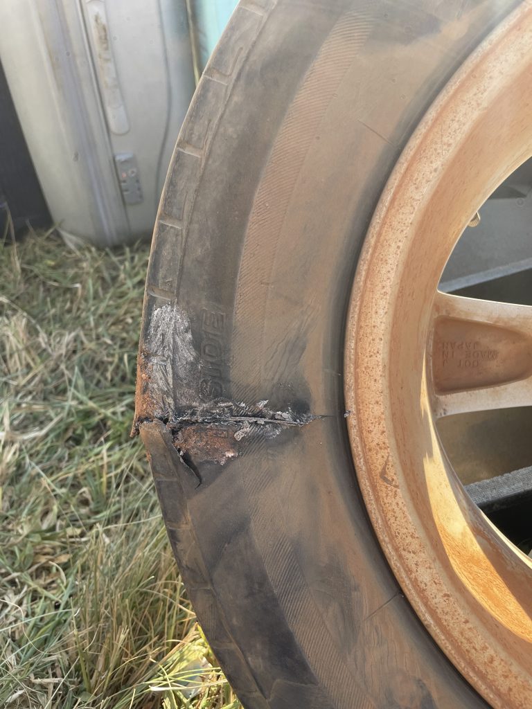 Nach Lira wird die Straße besser, aber es sind immer noch dreihundertsiebzig Kilometer. Gegen drei Uhr machen wir eine kurze Mittagspause, dann geht es weiter. Emmanuel fährt nun unser Auto, damit wir noch einiges besprechen können. Kurz danach fängt das Auto an, heftig zu rattern und es ist sofort klar, dass wir einen kaputten Reifen haben.