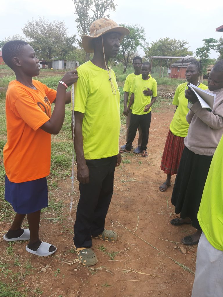 Die Mitglieder der Kooperative bekommen alle einheitliche Arbeitsoveralls. Das ist nicht nur praktisch, sondern stärkt das Gefühl der Zugehörigkeit ganz erheblich. Die Schneiderinnen nahmen unter Aufsicht ihrer Lehrerin Maß, und die Overalls werden dann in der Schule und in unserer Schneiderei angefertigt.