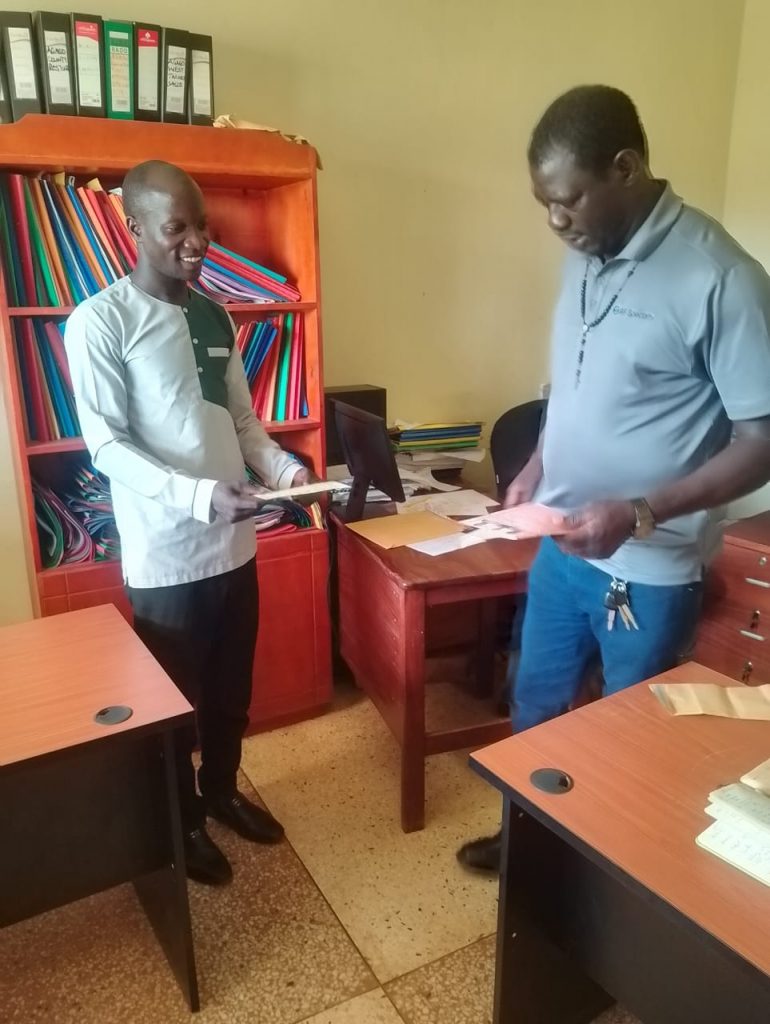 Unser Projektmanager Nelson konnte die Urkunde vom zuständigen District Officer, der den ganzen Prozess wirklich tatkräftig unterstützt hat, entgegennehmen.
